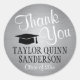Pegatina Redonda Graduación Gracias Script Brushed Silver Gray