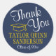 Pegatina Redonda Graduación Gracias Script Navy Blue Gold Yellow