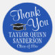 Pegatina Redonda Graduación Gracias Script Royal Blue and White