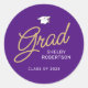 Pegatina Redonda Graduación Grad Modern Script Purple and Gold