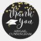 Pegatina Redonda Graduación Guión de Confeti Dorado Negro GRACIAS