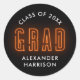 Modernos pegatinas de graduación con "Grad" en letras de neón naranja con fondo negro. Personalice a los pegatinas de graduación de neón añadiendo el nombre del graduado y el año de graduación. ¡Los pegatinas de graduación personalizados son perfectos para sellar sobres de graduación y bolsas de favores! Diseñado para coordinar con nuestra moderna colección de graduación de neones.