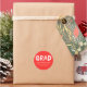 Selle sus sobres de graduación y los bolsos de la fiesta de graduación con pegatinas de graduación personalizados. Los pegatinas muestran "Grad" con letras de pintura blanca con un fondo rojo o color de su elección. Personalice a los pegatinas de graduación de pintura con aerosol añadiendo el nombre del graduado, el nombre de la escuela y el año de graduación.