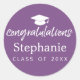 Pegatina Redonda Graduación púrpura Cap felicitación guión moderno