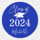Sellos para sobres de graduación reales azules y blancos o pegatinas partidarios con una clase editable DE AÑO, tipografía manuscrita y gorro de graduación o mortero. Muestra los colores de la escuela de tu graduado o crea un color de papel de coordinación sobre invitaciones a graduación, invitaciones y tarjetas de agradecimiento o uso para favores de la fiesta de graduación. ASISTENCIA: Para obtener ayuda con la modificación o personalización del diseño, el cambio de color, la transferencia del diseño a otro producto o desea coordinar elementos, póngase en contacto con el diseñador ANTES DE PEDIDOS a través de la pestaña MENSAJE de conversación Zazzle debajo o envíe un correo electrónico a makeitaboutyoustore@gmail.com.