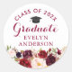 Pegatina Redonda Graduación Rústica de Borgoña Floral