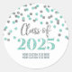Pegatina Redonda Graduación Turquesa Confetti Plata 2025