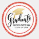 Pegatina Redonda Graduado | Faux Gold Foil Hat Faux Red Glitter