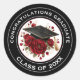 Pegatina Redonda Graduation Cap & Red Roses Class of 20XX
