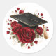 Pegatina Redonda Graduation Cap with Red Roses Celebration Design