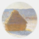 Pegatina Redonda Grainstack en la mañana, efecto de nieve de Claude