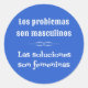 Puede ser difícil recordar el sexo de algunos sustantivos en español, pero aquí hay un pegatina divertido para ayudar con eso. Hay un dicho popular: "Los problemas son maculinos, Las soluciones son mujeres". Esto se traduce como "Los problemas son masculinos, las soluciones son femeninas". Una gran idea para un profesor de agregar al trabajo de los alumnos para recordarles, este pegatina tiene texto blanco sobre un fondo azul brillante.