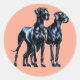 Un ilustracion estilizado de dos majestuosos grandes daneses parados uno al lado del otro, mostrando sus cuerpos elegantes y musculares y sus rasgos elegantes. Los perros son negros con abrigos lisos y brillantes, acentuados por las sombras dramáticas y los resaltados para enfatizar sus fuertes físicos con un sutil efecto acuarela que añade un toque artístico.