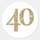 Pegatina Redonda GRAN EDAD NÚMERO moderno 40 purpurina de oro