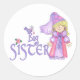 Princesa de bonito en rosa y morado con texto que dice 'Hermana Grande'. Tiene diseños de hermanita y hermanita media.