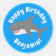 Pegatina Redonda Gran ilustracion personalizado feliz de tiburón bl