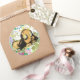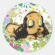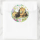 ojo grande Perro cachorro durmiendo en flores Personalizado Arte animal ilustracion retro vintage hoja de pegatina redonda