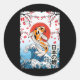 Pegatina Redonda Gran ola de Kanagawa Cherry Blossom Koi Fish