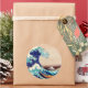 Pegatina Redonda Gran ola de la impresión de bloques de madera japo