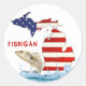 Pegatina Redonda Gran pez en el agua con bandera de Michigan