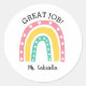 Pegatina de arcoiris personalizado para el gran trabajo del profesor, que presenta un arcoiris rosa, amarillo y azul. Serás capaz de personalizar con tu nombre.