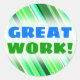 Este diseño pegatina presenta un patrón de líneas o rayas de diferentes tonalidades de verde. También incluye el motivador mensaje "¡GRAN TRABAJO!" en texto de color azul y verde. Un profesor, un educador o un tutor tal vez podrían usar a pegatinas como estos para reconocer que animan a un estudiante que ha hecho bien en un examen, prueba, trabajo, proyecto o alguna otra tarea académica. [~Z0000117]