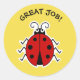 Este pegatina representa una asombrosa mariquita, y las palabras "¡GRAN TRABAJO!" en texto negro sobre un fondo amarillo brillante - o puede editarlo para su mensaje preferido. Una forma atractiva para que un profesor o padre muestre aprecio por el gran trabajo o la utilidad, por ejemplo.