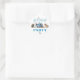 Pegatina redonda para fiesta de cumpleaños de animales de granja. Utilice como sello de sobre al enviar invitaciones a la fiesta. Un tractor azul es el centro del diseño que incluye muchos animales de corral. Un toro, burro, vaca, cordero, cerdo, conejo y patos, así como un cachorro, gato y pájaros. El texto es azul y el fondo es blanco. Las pegatinas redondas vienen en dos tamaños.