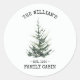 Trae el espíritu festivo a tu casa con nuestra pegatina de Navidad , con un hermoso árbol de navidad de acuarela pintado sobre un crujiente fondo blanco con nombre familiar.