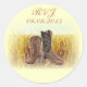 Pegatina Redonda granja de trigo rural boda de vaquero occidental