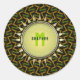 Pegatina Redonda Green + Gold Modern Tribal Sun Monograma Bookplate
