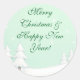 Pegatina Redonda Green Merry Christmas and Snowley Pines