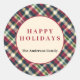 Seal your holiday greetings with festive flair using this tartan plaid sticker. With a traditional red, green, and navy plaid border and an ivory center, this cheerful design reads "Happy Holidays" in bold red text, with space to personalize your family name below. All texts are customizable.