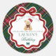 Pegatina Redonda Green Tartan Plaid Christmas Bear Birthday Favor