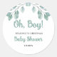 Greenery Baby Shower Oh boy Pegatina redondeado clásico