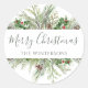 Pegatina Redonda Greenery de invierno rústica Feliz Navidad