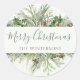 Pegatina Redonda Greenery de Invierno Rústico Feliz Navidad