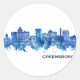 Pegatina Redonda Greensboro North Carolina Skyline Blue