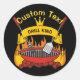 Parrilla barbacoa sobre carbón vegetal en llamas, banner de desplazamiento con texto personalizado sobre el tenedor y la espátula. Color de fondo personalizado. Texto superior del personalizado.
