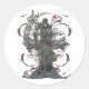 Parca parca con el cráneo atrapado puntos en ti, esperando la muerte... ¿o te está advirtiendo? Parrón pardo con largo, tinieblas oscuras y dedos huecos, vidrio de hora de cuero vestido cuelga de la cintura. Fondo de alambre de púas con puntas curvadas afiladas de afeitar. Siniestro diseño de esqueletos perfecto para Halloween, fans de los tatuajes de cráneo y los muertos malvados!