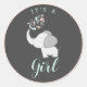 Pegatina Redonda Gris rosado y elefante de menta es un favor Chica