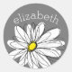 Pegatina Redonda Gris y blanco y sincera margarita con texto Person