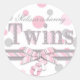 Pegatina Redonda Gris y rosado de los gemelos Polka puntos Baby Sho