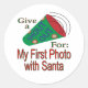 Pegatina Redonda Grito por mi primera foto con Santa