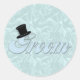 Pegatinas de seda turquesa Groom, fondo de seda turquesa con letras azul pálido dice "Groom" la letra "G" tiene un sombrero top negro, toma cualquier diseño y crea tus propios pegatinas personalizados.
