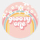 Pegatina Redonda Groovy arcoiris retro primer cumpleaños