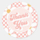 Pegatina Redonda Groovy Baby Pink Check Daisy gracias