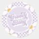 Pegatina Redonda Groovy Baby Purple Daisy Checker