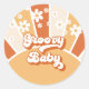 Pegatina Redonda Groovy Baby Retro Sunshine Hippie Baby Shower
