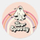 Pegatina Redonda groovy Ghost retro Halloween Dos cumpleaños espelu